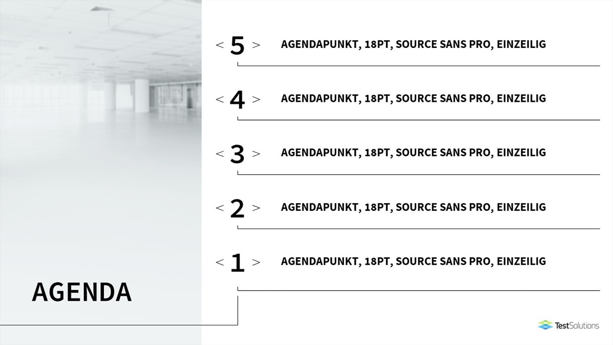 Im Rahmen der visuellen und strategischen Weiterentwicklung der Marke unterstützte K16 TestSolutions bei der Entwicklung einer neuen Corporate Identity, die den inhaltlichen Grundstein für die Unternehmenspräsentation bildet. Darüber hinaus gab K16 den Mitarbeitenden von TestSolutions mit einem Master und einer Folienbibliothek wichtige PowerPoint-Tools an die Hand, die ein einfaches und flexibles Gestalten der eigenen Folien erlauben. Diese legten den Grundstein für erste Corporate Design Elemente.