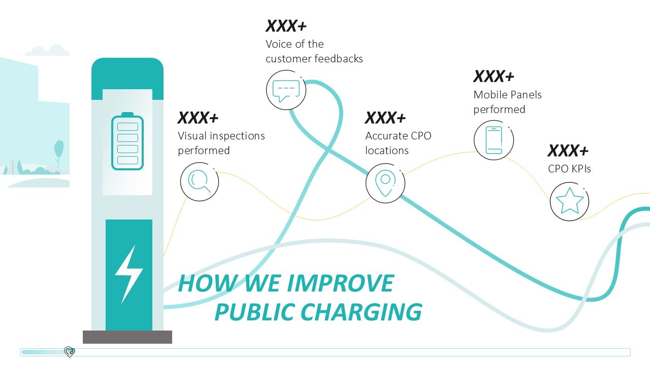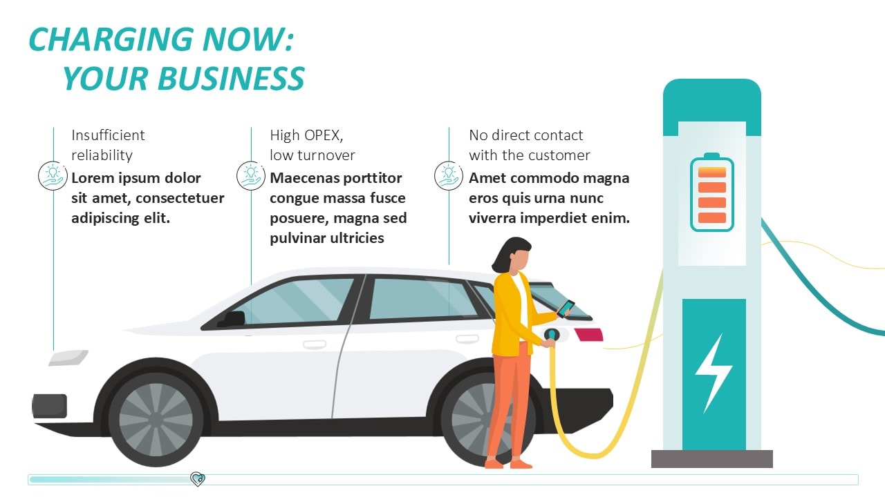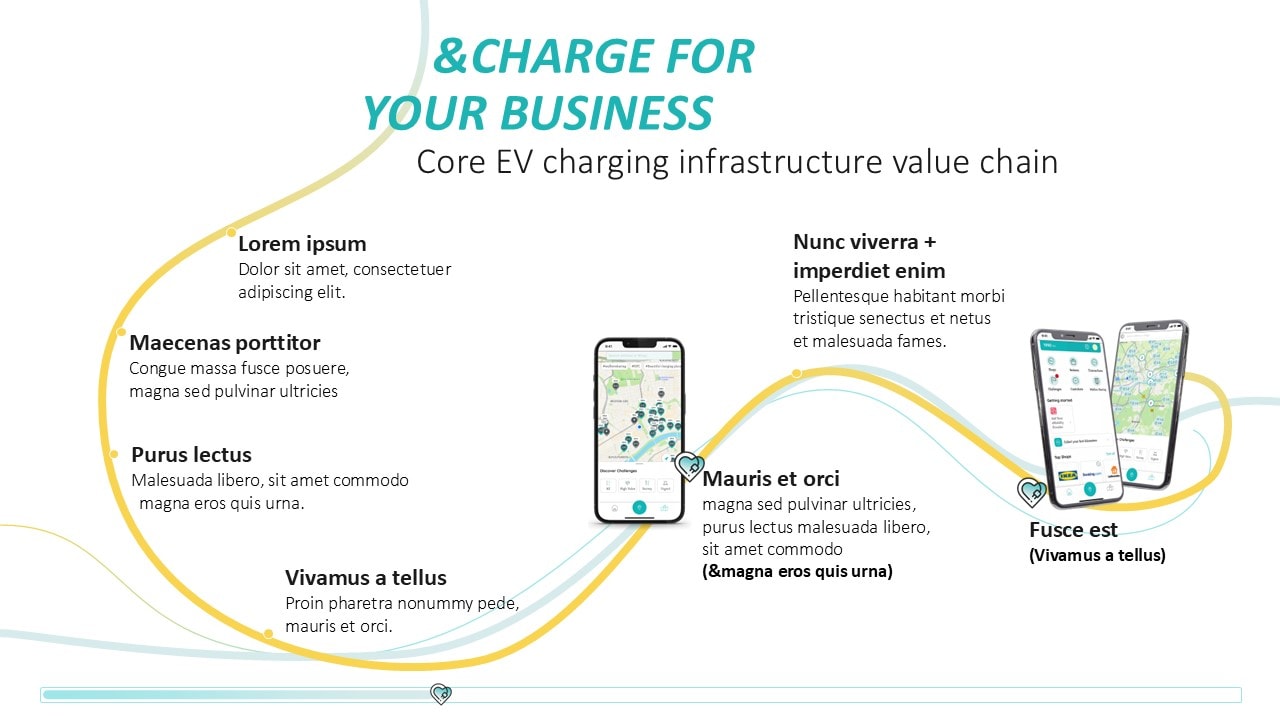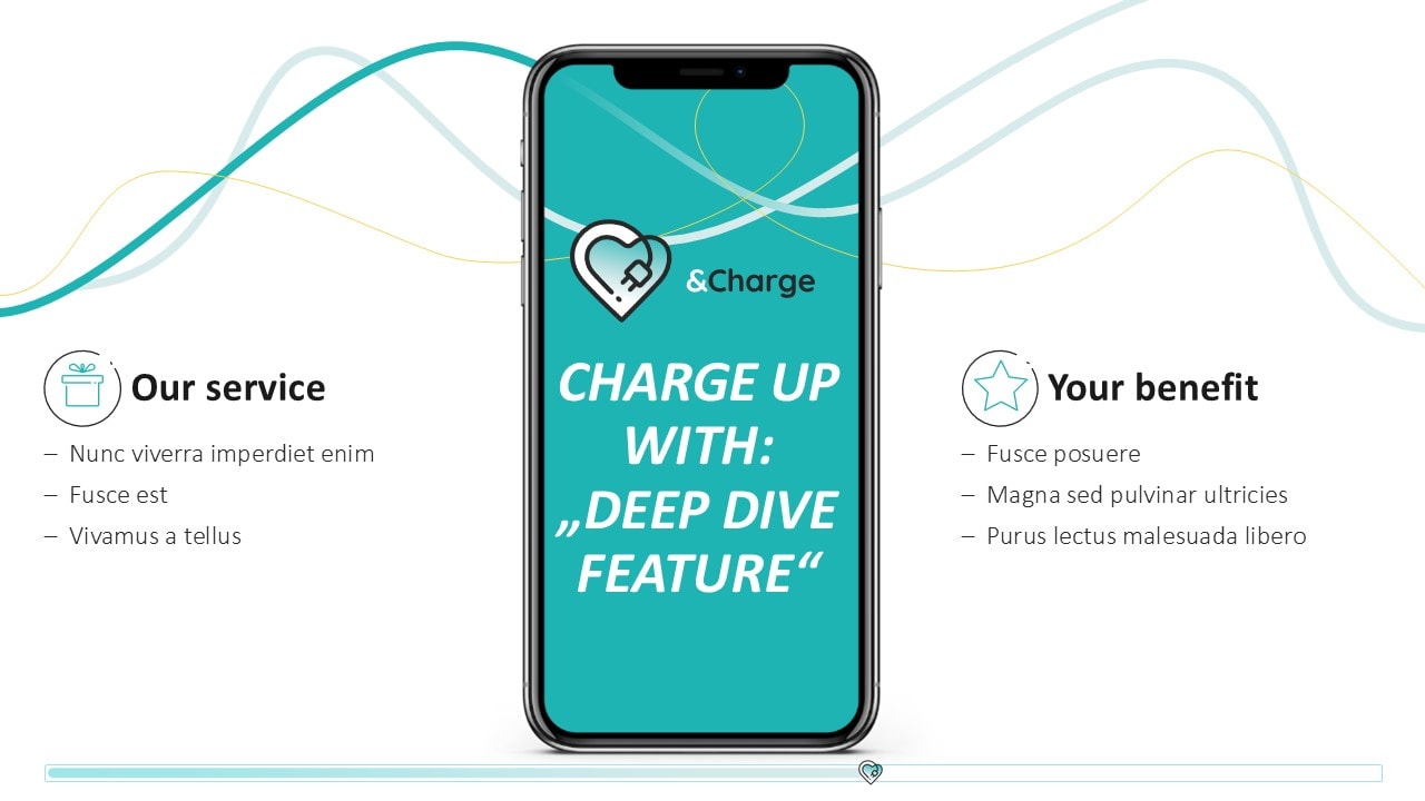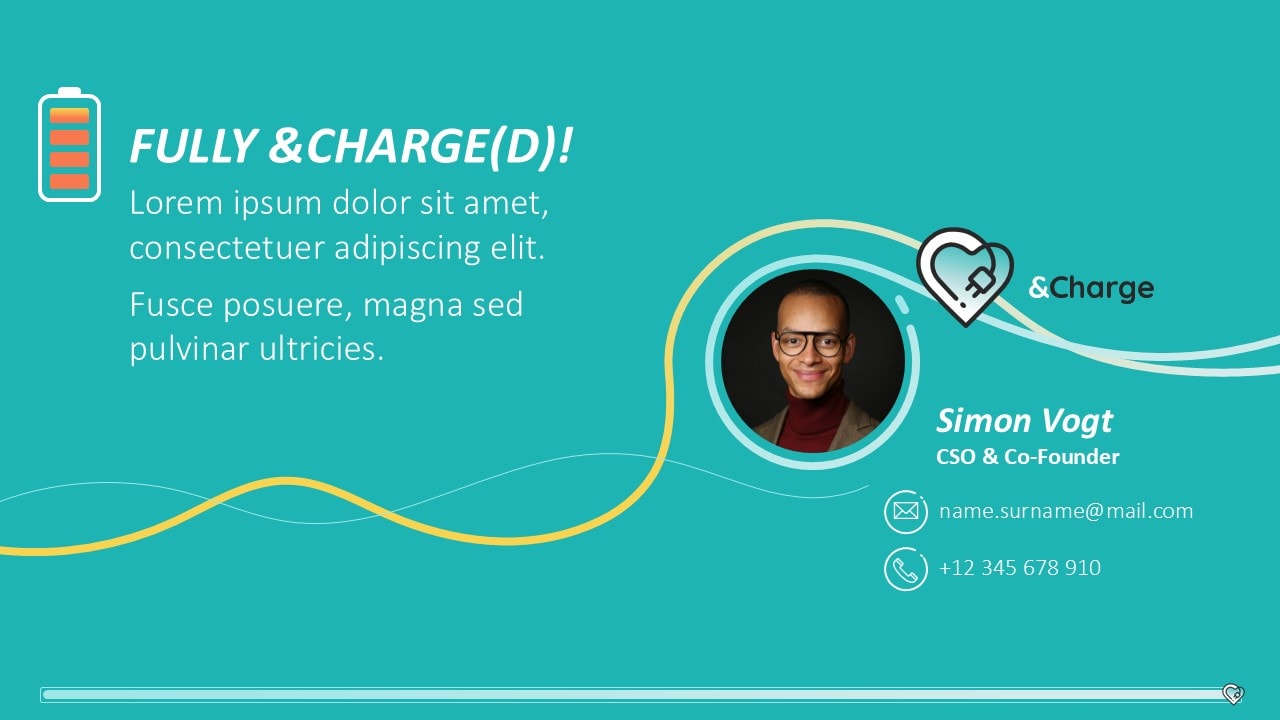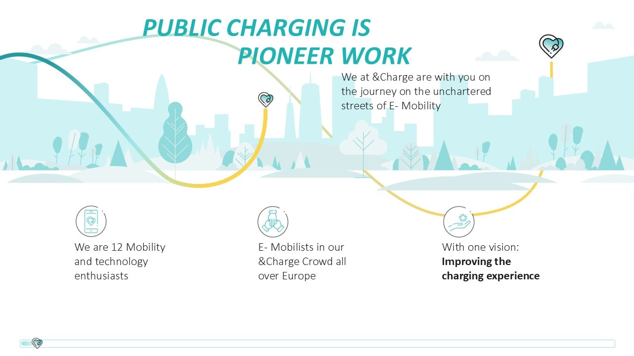 Für das junge Start-up &Charge, das Lösungen im E-Mobility-Bereich für E-Autofahrer:innen und Chargepoint Operators anbietet, entwickelten wir eine kreative und dynamische Pitchpräsentation. In einem Workshop fungierten wir als inhaltlicher Sparringspartner des Kunden zur Überarbeitung der PowerPoint-Präsentation. Für die Storyline erarbeiteten wir die zentrale Idee „We charge your Business“, die wir visuell im Design aufgreifen und mit der Darstellung von Ladekabeln lebendig werden lassen. Das Ergebnis ist eine Pitchpräsentation, die die komplexe Software-Lösung klar und verständlich auf den Punkt bringt. In der Gestaltung wird das Corporate Design von &Charge aufgenommen: Mit klaren Linien und verspielten Elemente wird das innovative und zukunftsorientierte Wesen des Unternehmens unterstrichen.