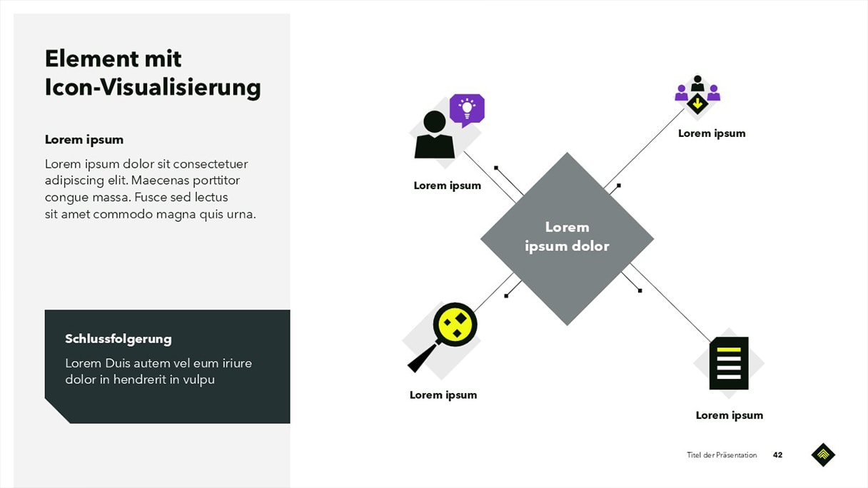 The challenge for FinTech company Fingentia, which specialises in AI and data science solutions in the banking sector, was to position itself strongly and appropriately in the demanding banking environment with its smart topics. To achieve this, we developed a customised PowerPoint master and a comprehensive PowerPoint template library.